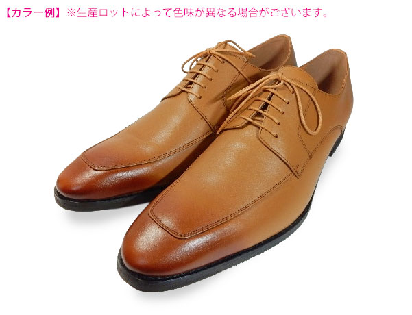 つま先はチゼルトゥのシャープなデザインで、シルエットのきれいな紳士靴です。アッパー(甲革)は高品質の柔らかな天然皮革(牛革)で足馴染みが良く風合いがあります。ソールは軽量の合成ゴム底。足幅(ワイズ)は4E(EEEE)と幅広甲高で足入れが良く履きよい靴です。